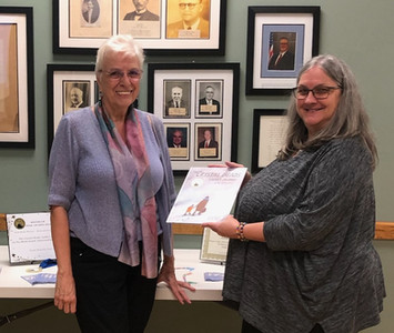 I had the privilege of joining Foley Library in Foley, Alabama, twice to present my book, The Crystal Beads, Lalka's Journey. On the left below, I'm with Melanie Schnieders, Head of Outreach and Programming. On the right, I'm with Kate Norris, Library Director.